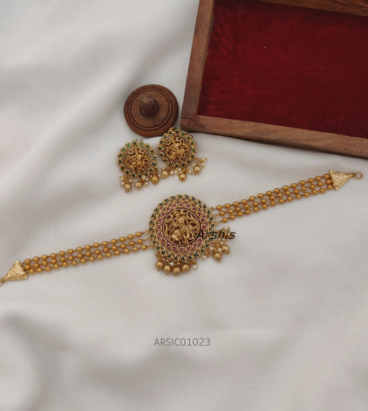 Three Layer Gold Ball Lakshmi Pendant Choker