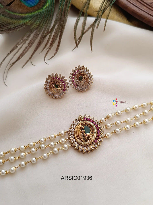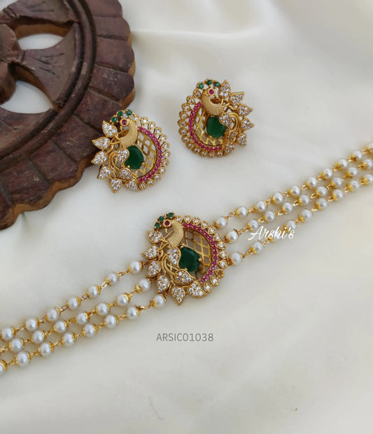 Three Layer Pearl with Peacock Pendant Haram