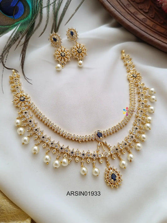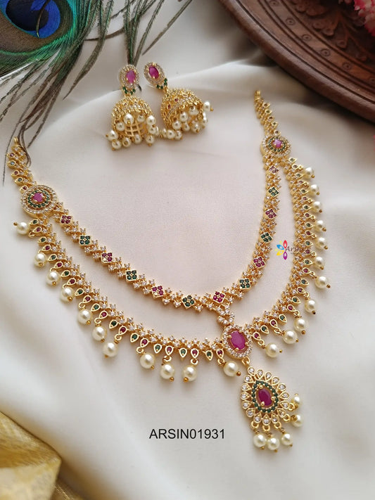 Two Layer Multi Stone with Pearl Drop Neckset