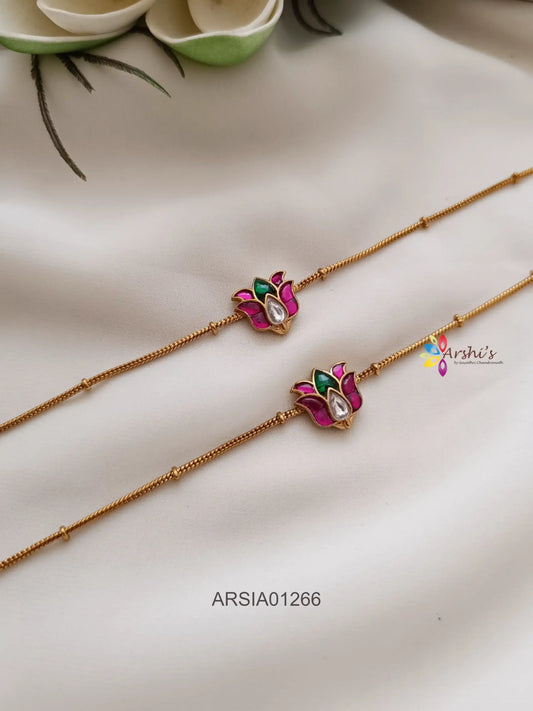 Double Lotus Design White Stone Anklets