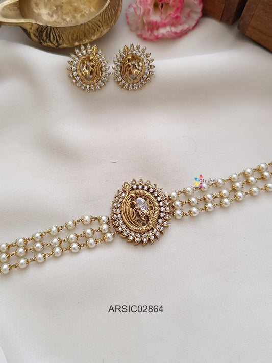 Diamond Look Like Flower Design Pearl Drop Earstuds