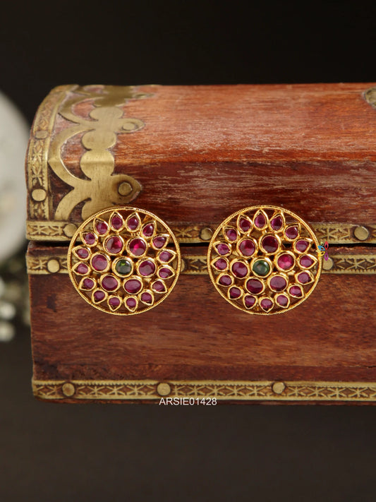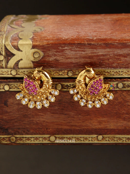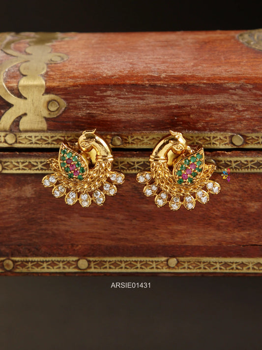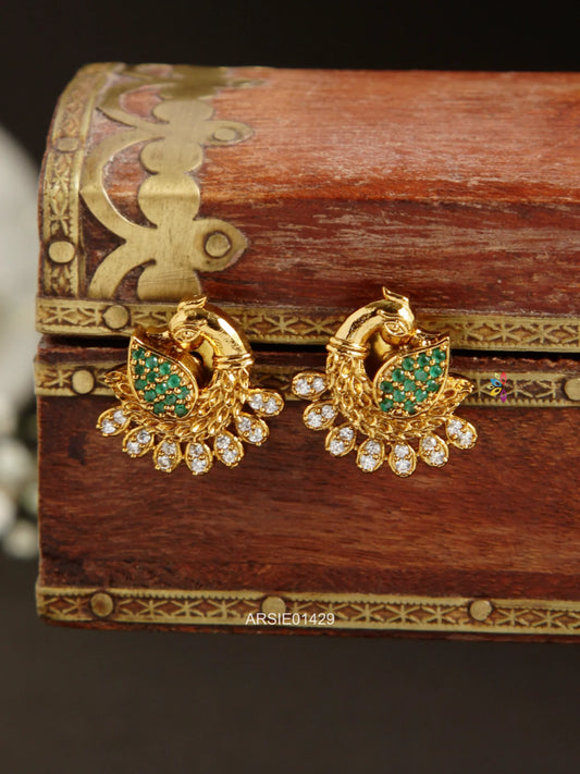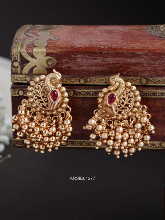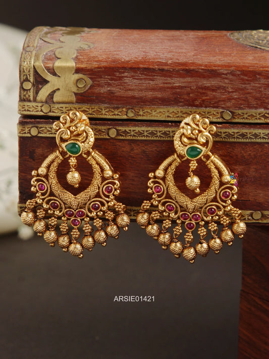 Peacock Kemp Stone Jhumka with Gold Bead Earchains