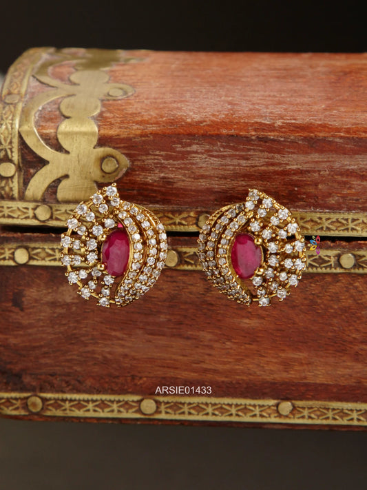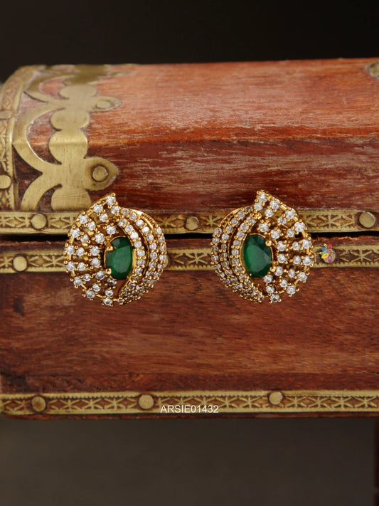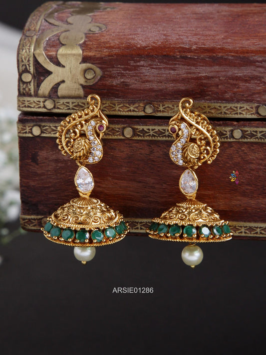 AD Stone Green Bead Jhumka with Pearl Earchains
