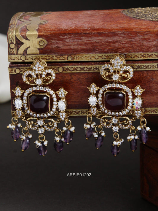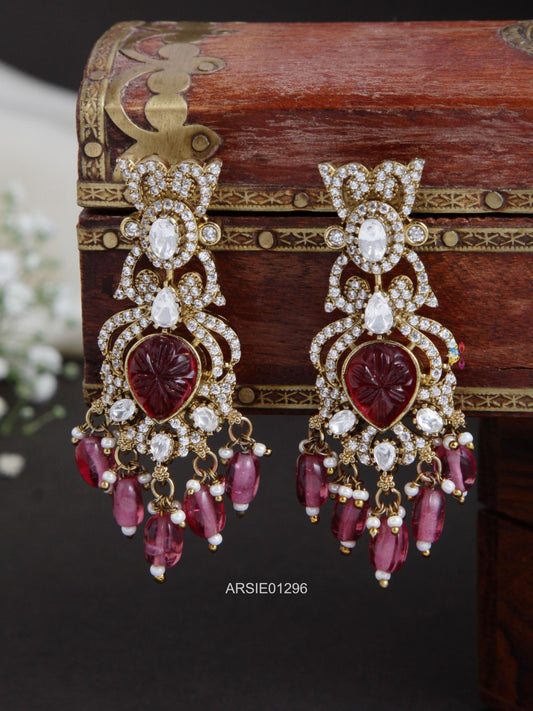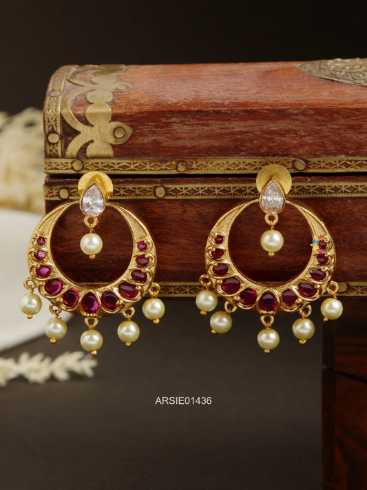 Half Moon Kemp Stone Jhumka with Pearl Earchains