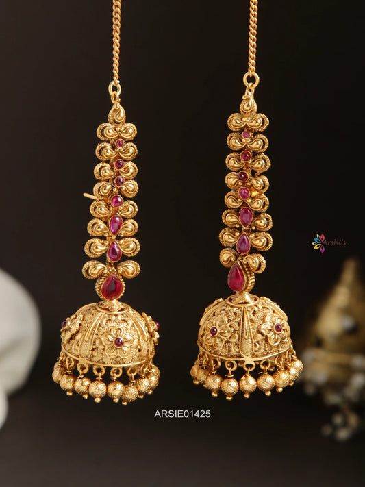 Antique Lakshmi Gold Bead Jhumka with Matching Earchains