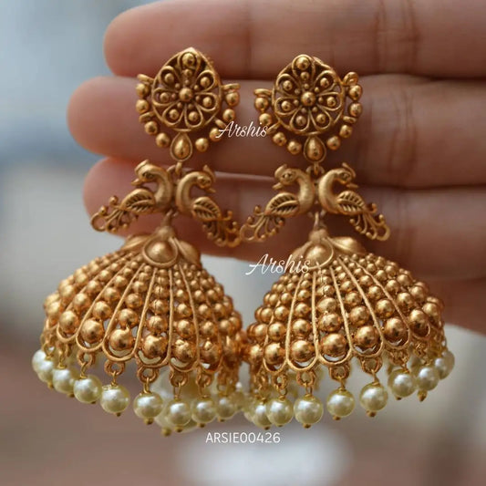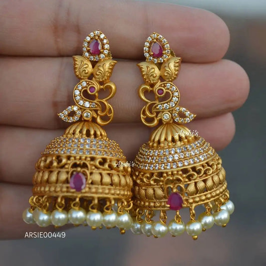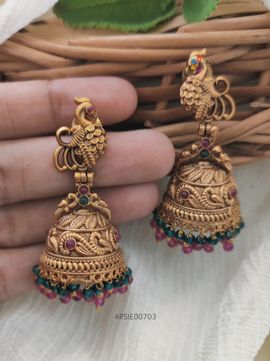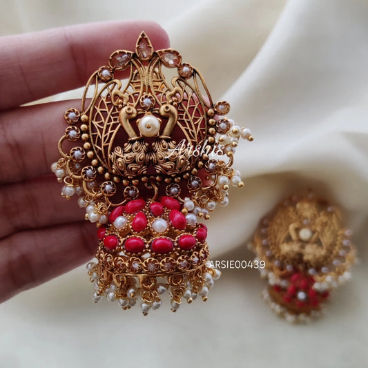 Sold outGrand Red Stone Dual Peacock Jhumka