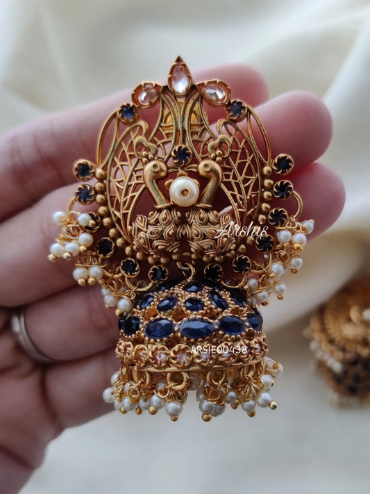 Sold outGrand Blue Stone Dual Peacock Jhumka