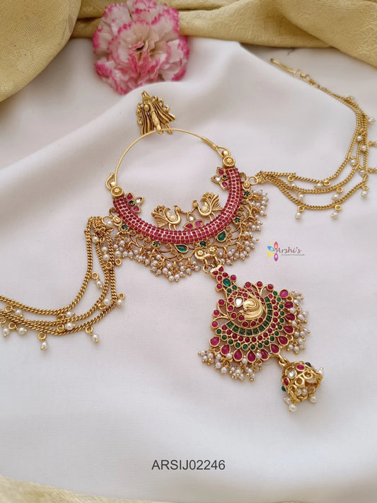 Lakshmi Kemp Stone with Pearl Earchain Hair Brooch