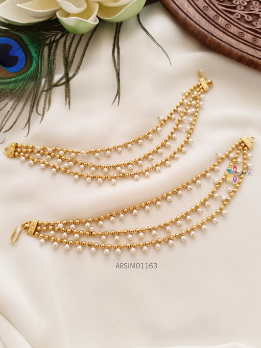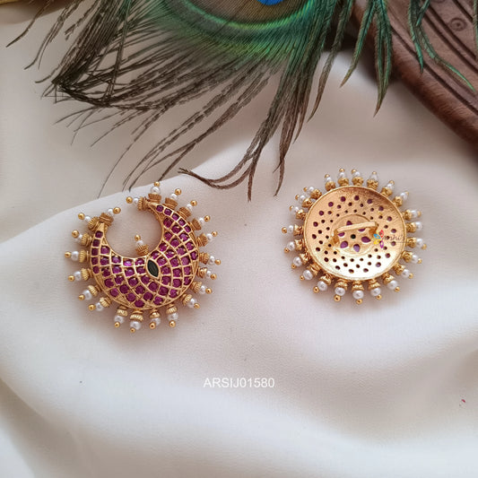 Kemp Stone with Jhumki Drop Pearl Layer Hair Brooch