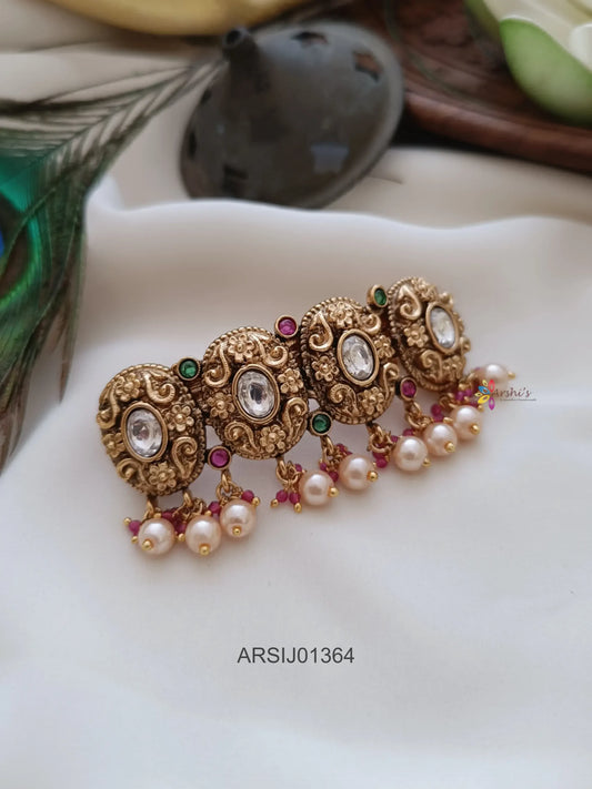 Lakshmi Stone Pearl and Gold Drop Hair Clip