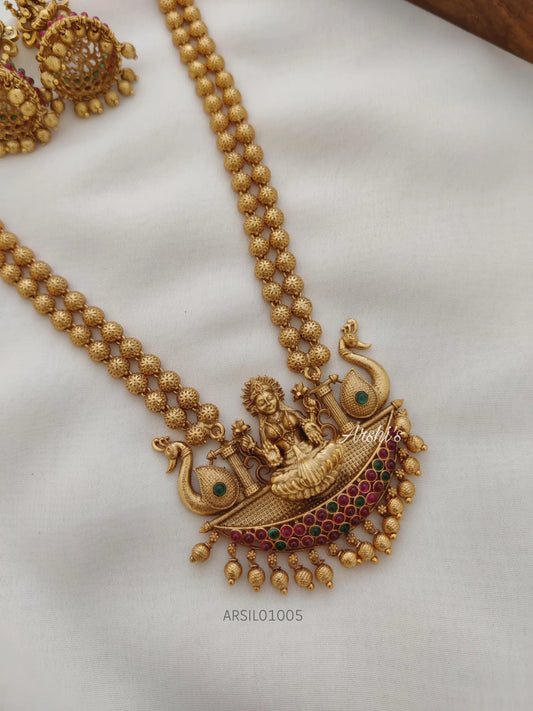 Trendy Two Layer Ball Chain Lakshmi Pendant Haram