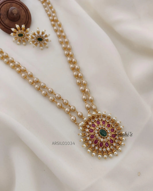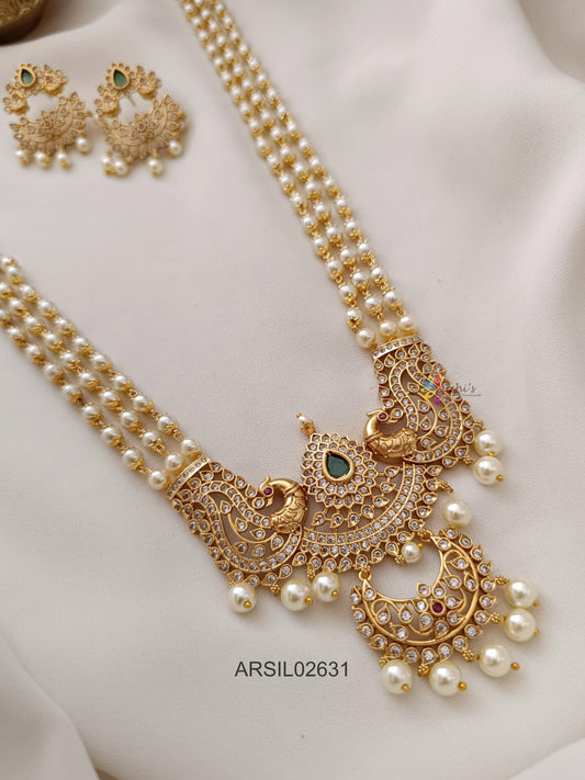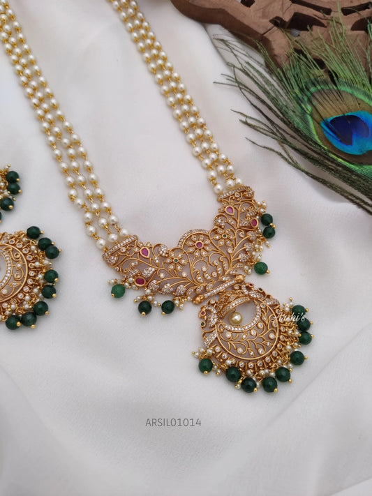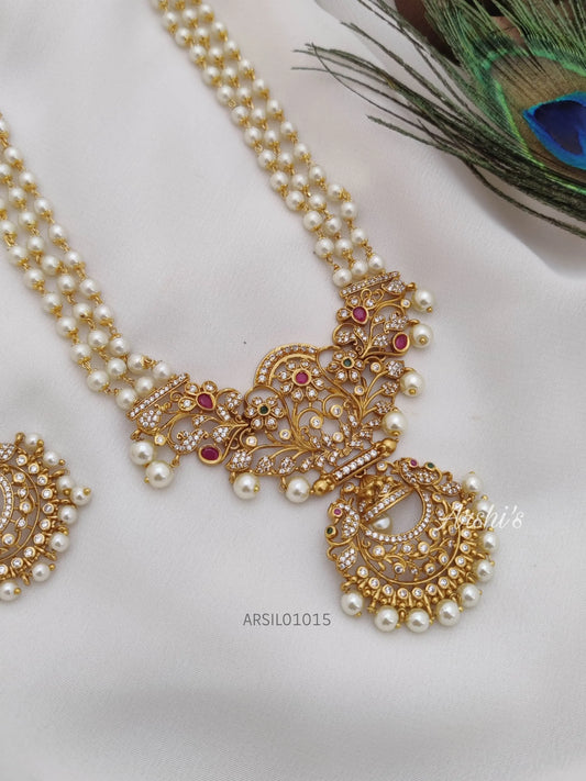 Three Layer Pearl Haram with Stone Chandbali Pendant