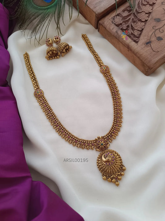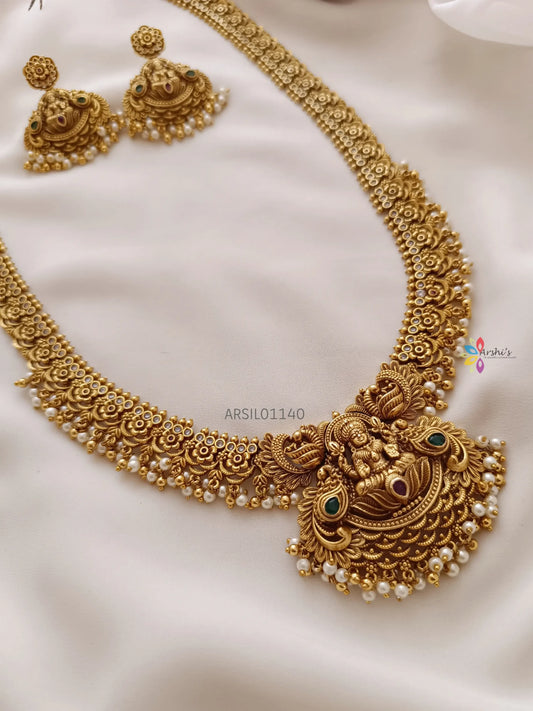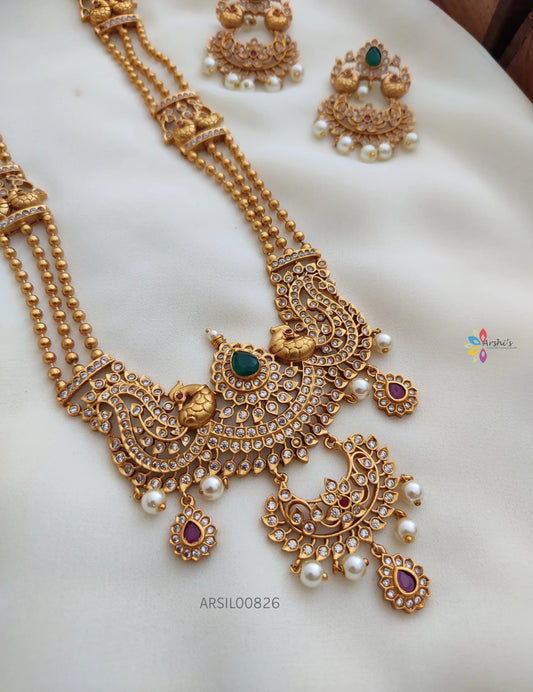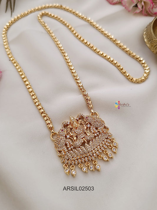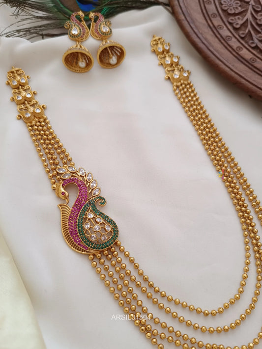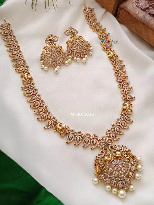 Peacock Design Chain with AD Lakshmi Pendant Long Haram