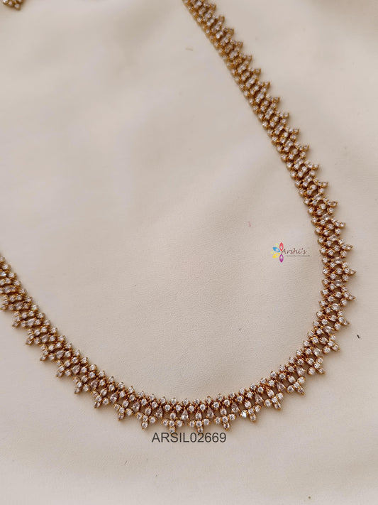 Two Layer Lotus Pendant White and Red Stone Long Necklace