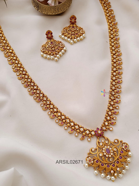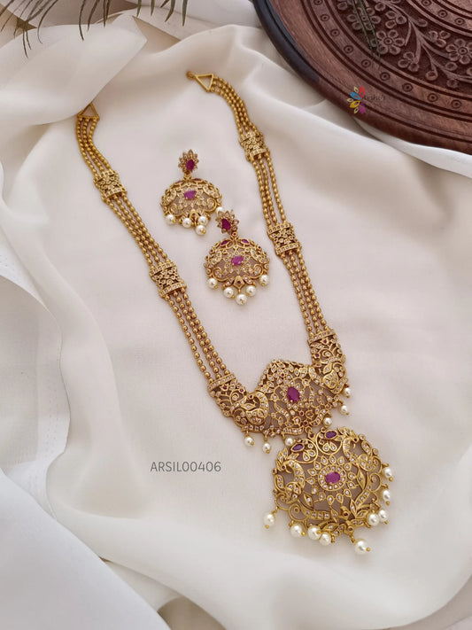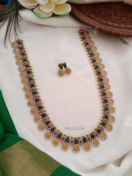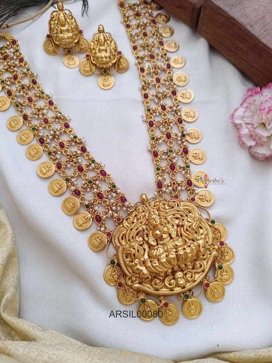 Lakshmi Coin Red Stone Palakka Long Necklace