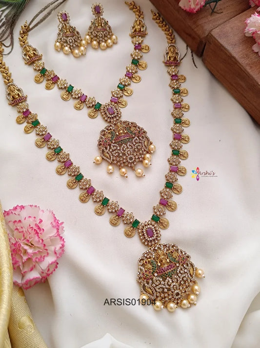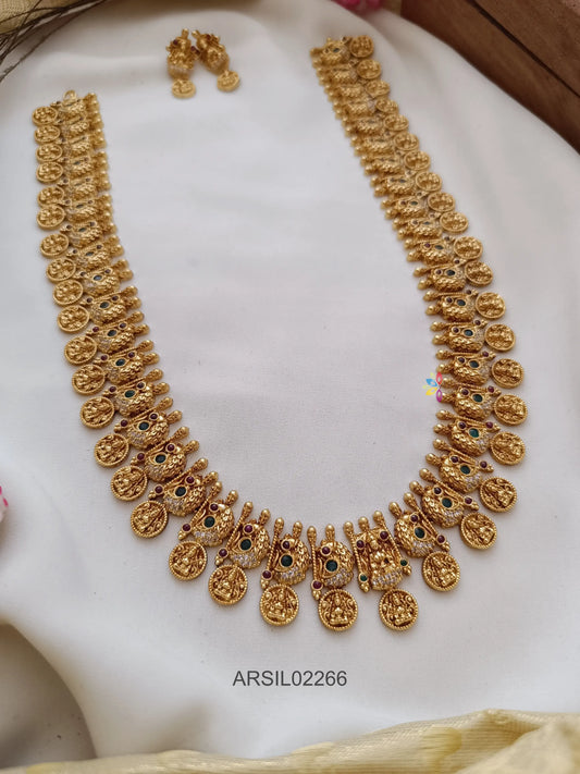 Pearl and AD Stone Lakshmi Coin Long Haram