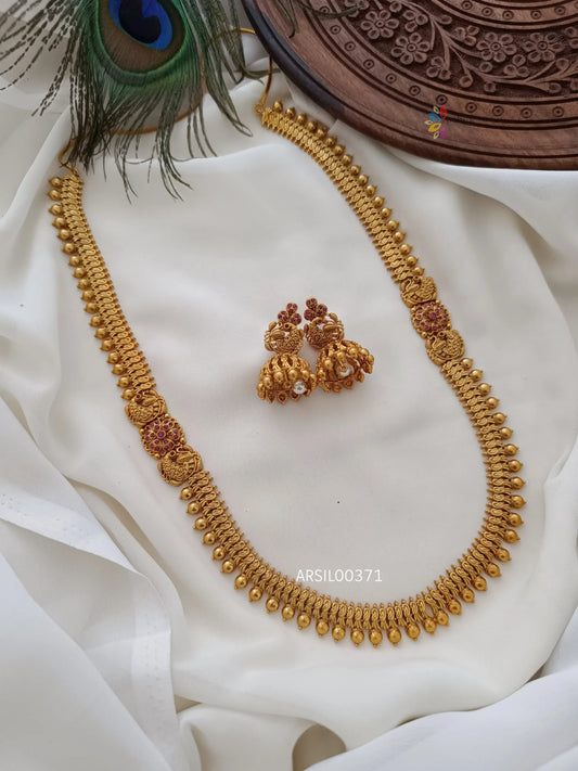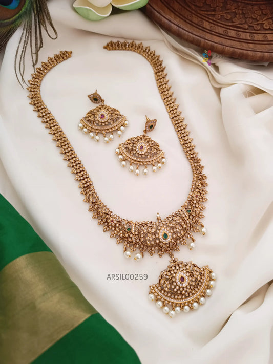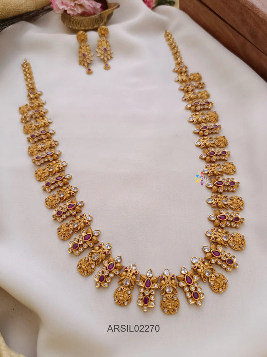 Lotus and Peacock AD Stone Purple Bead Long Haram