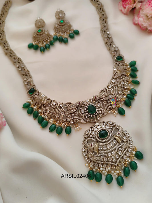 AD and Kemp Emerald Stone Peacock Pendant Haram