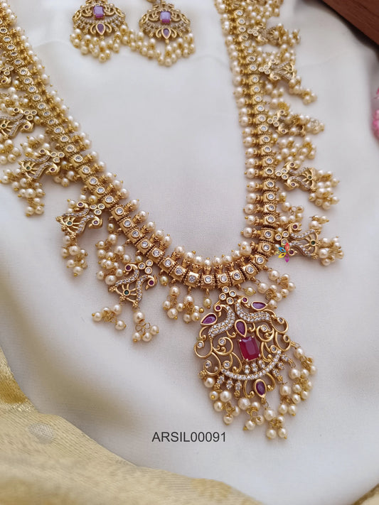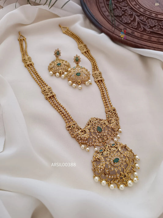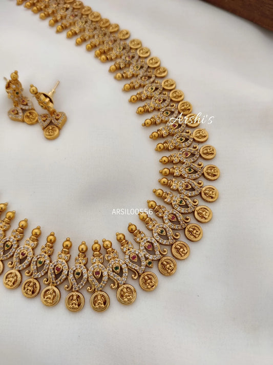 Lakshmi and Peacock Bottu Mala Long Necklace
