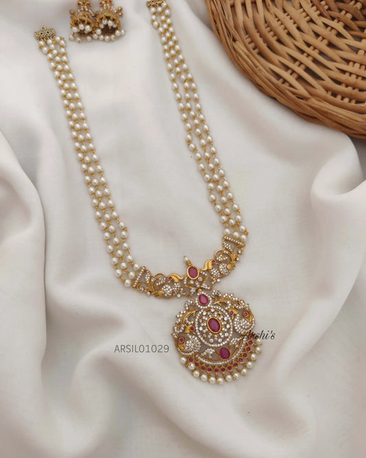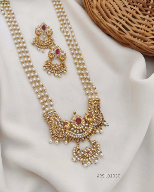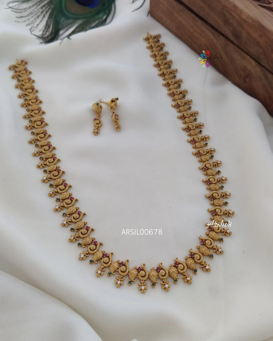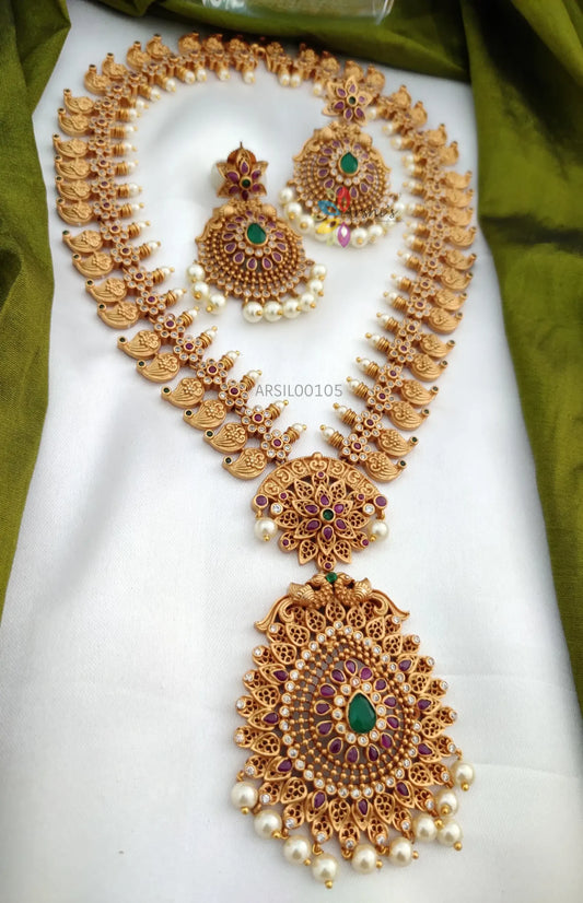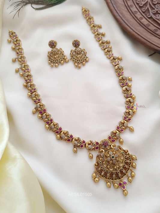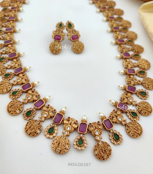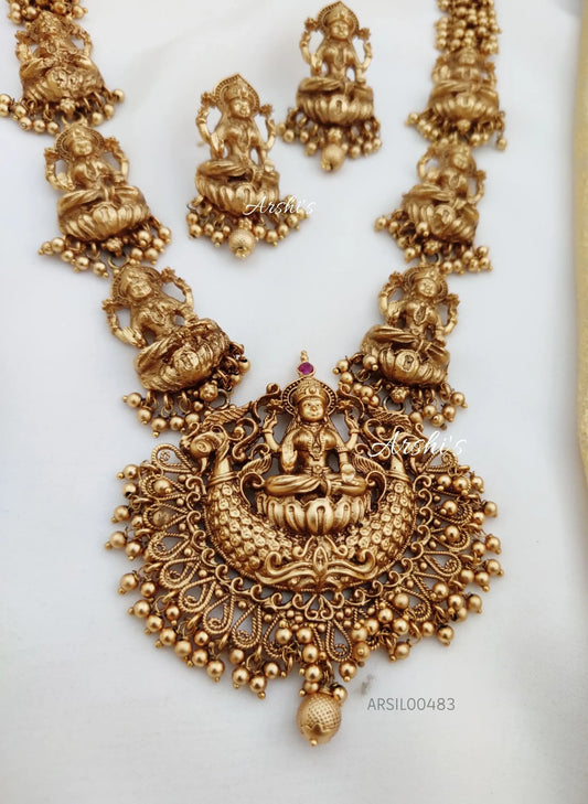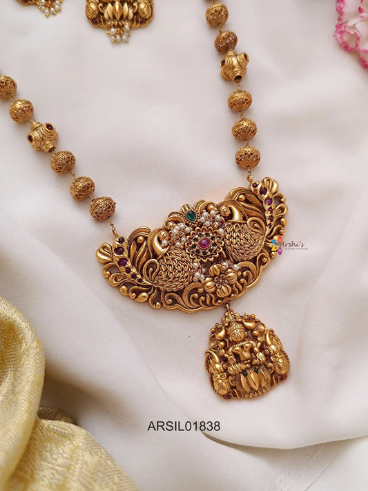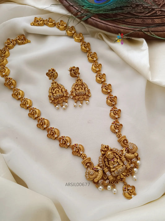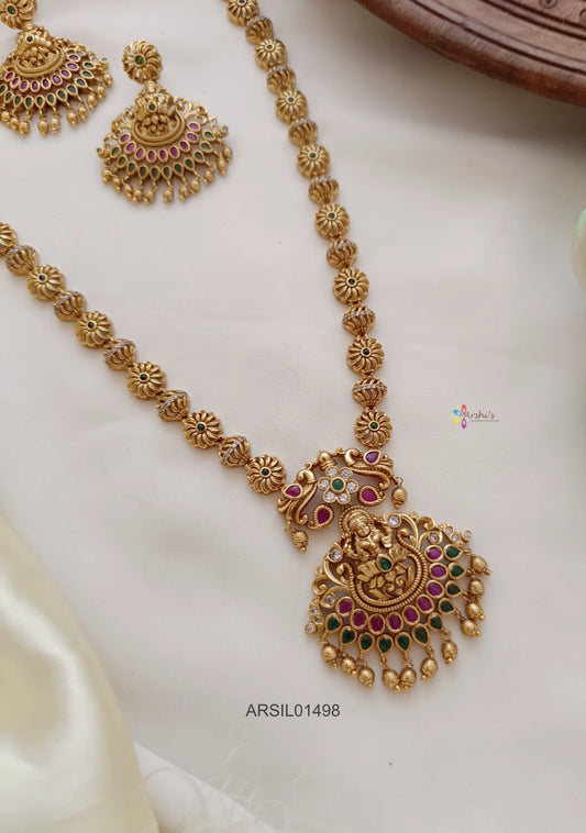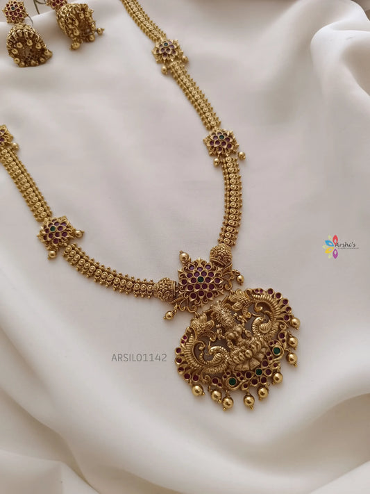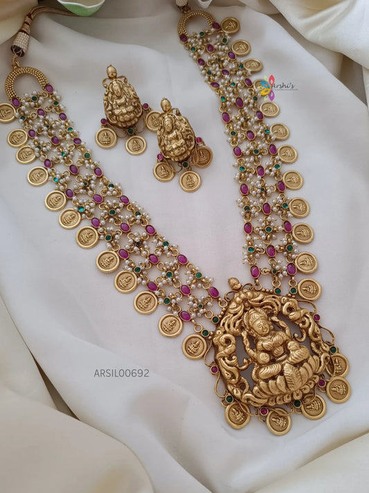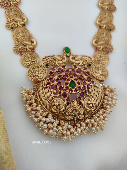 Bridal Lakshmi Pendant Kasumalai Long Necklace