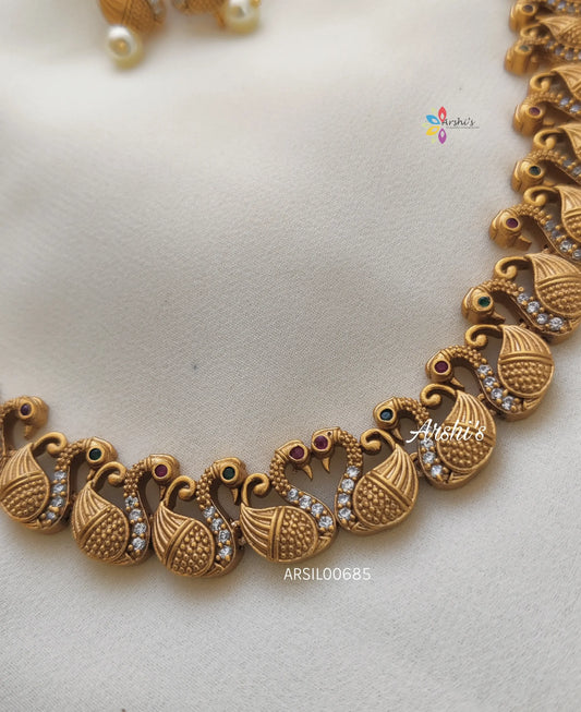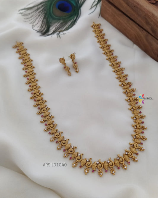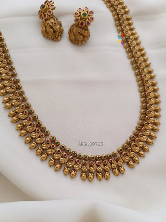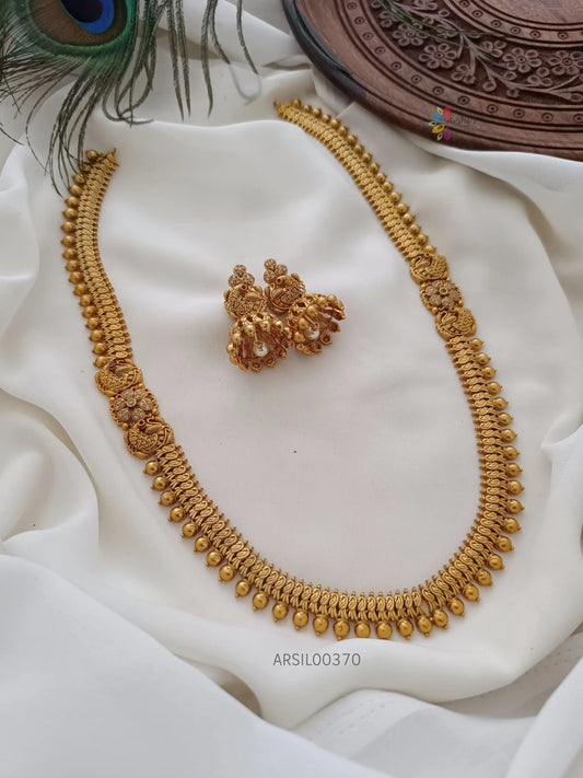 Peacock and Lakshmi Pendant Gold Bead Chain Haram