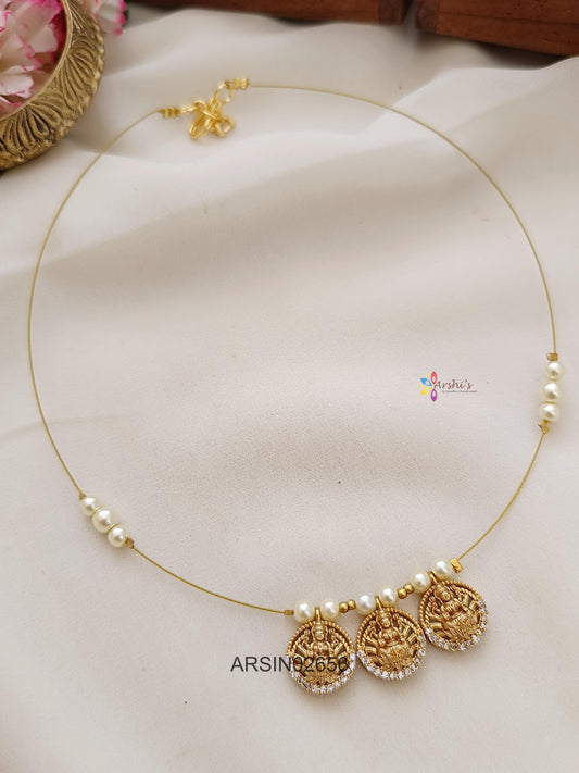 Three Lakshmi Coin Invisible Necklace