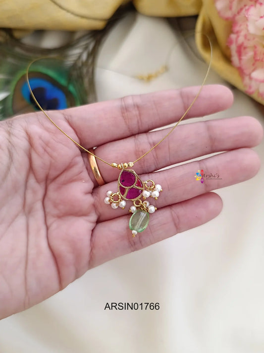 Red and White Chandbali Pendant Invisible Necklace