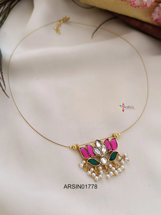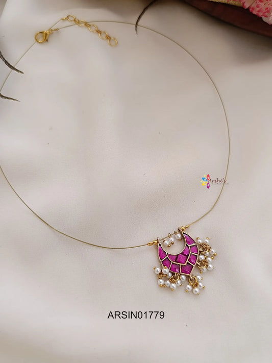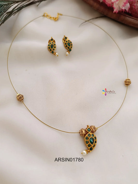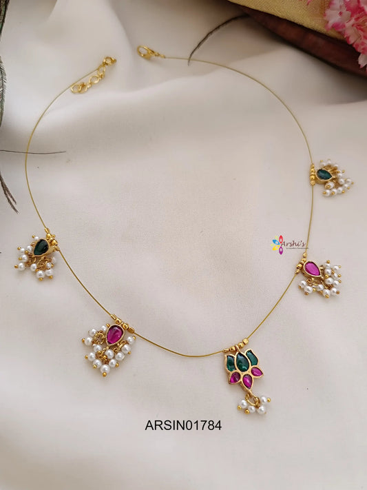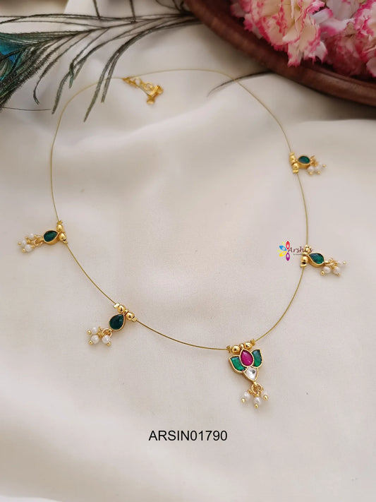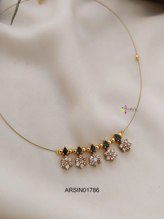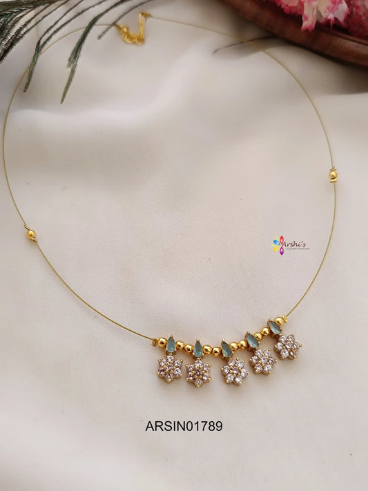 Star Design AD and Pale Blue Stone Invisible Necklace