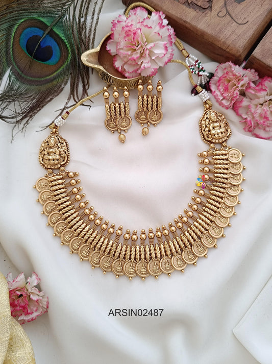 Matte Single Layer Lakshmi Coin Necklace
