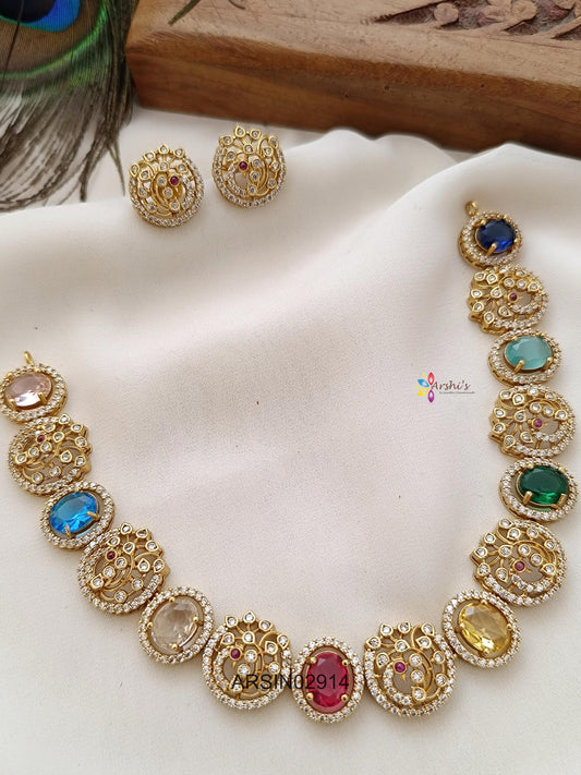 Peacock and Navarathna Stone Necklace