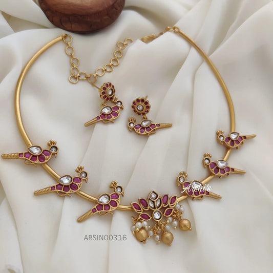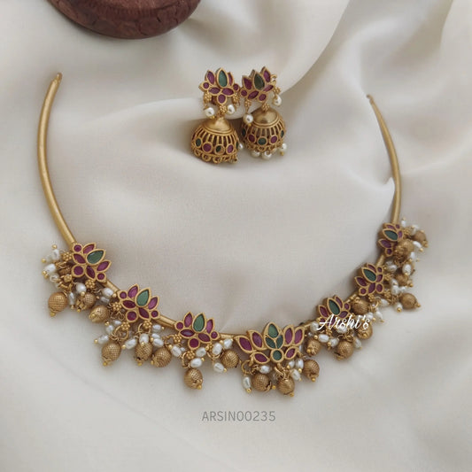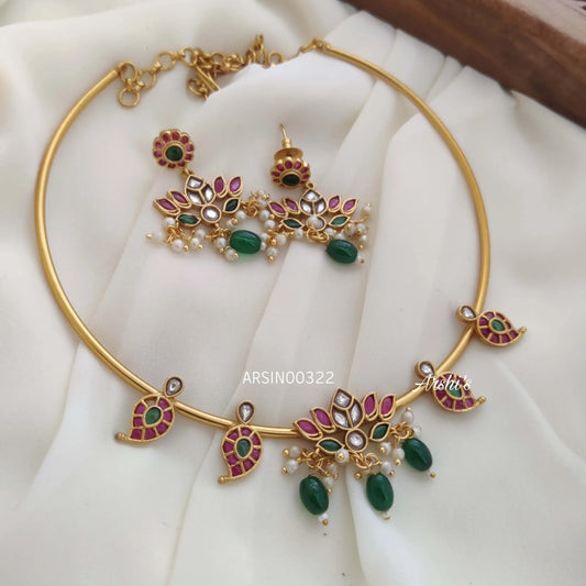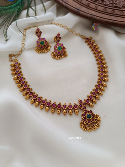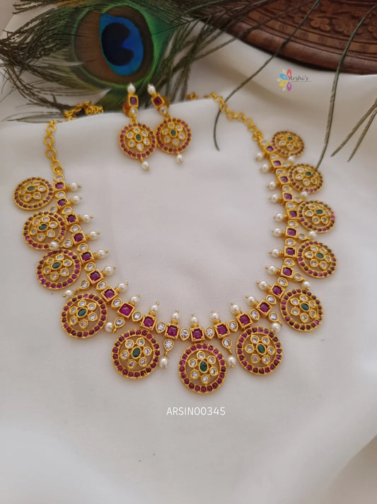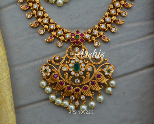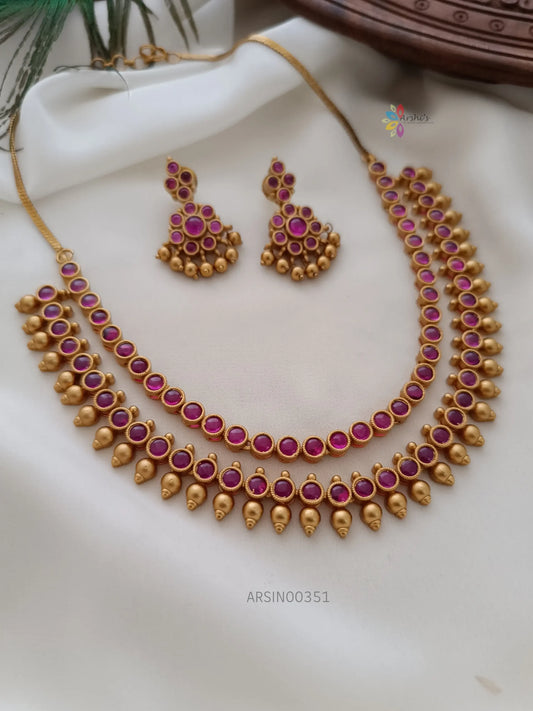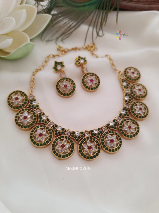 Traditional Kemp and Green Stone Ramparivar Necklace
