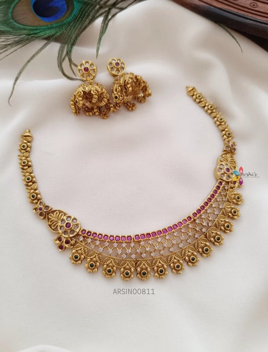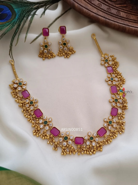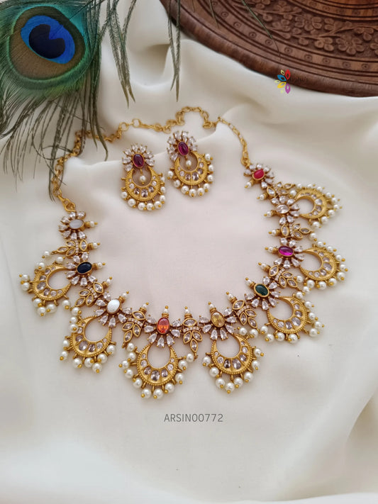 Navarathna Stone Chandbali Design Necklace