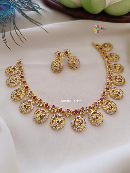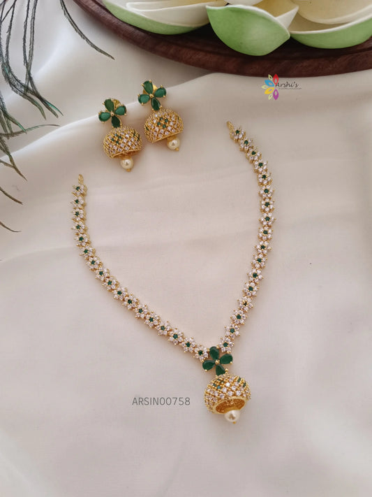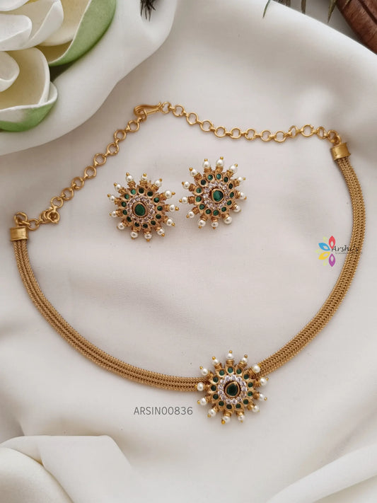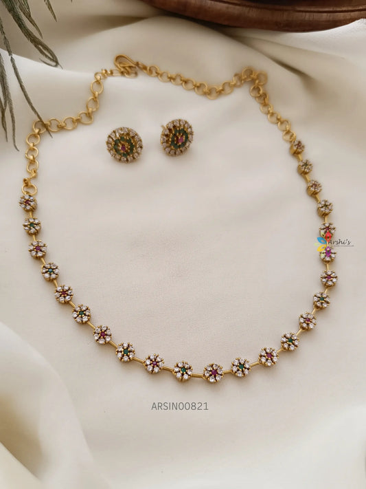 Simple Flower Design AD Stone Necklace
