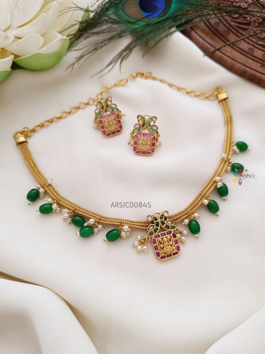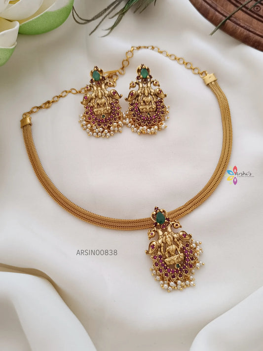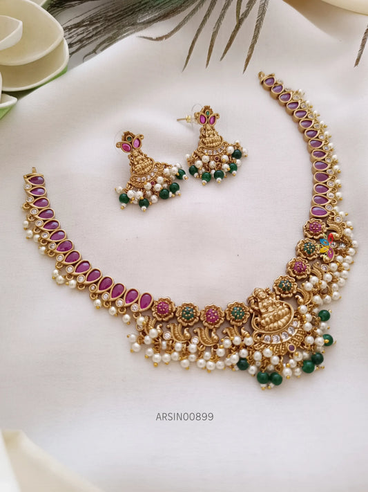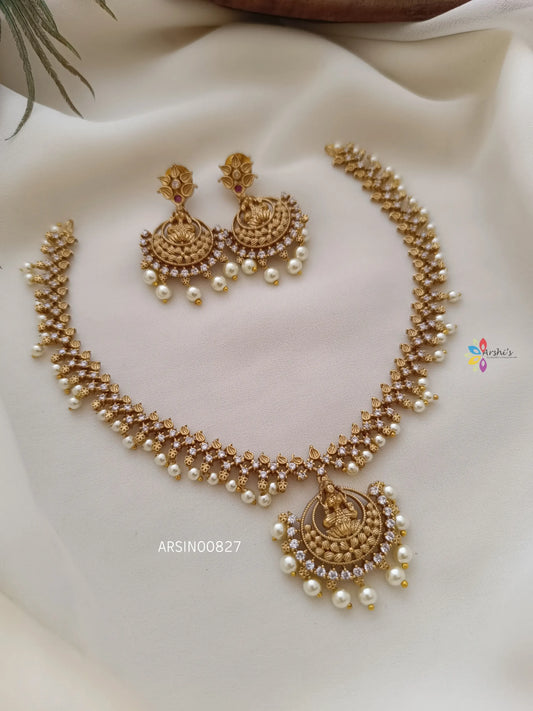 Lakshmi Pendant AD with Pearls Necklace