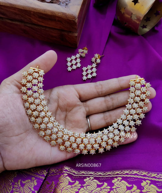 AD White Stone Flower Design Necklace