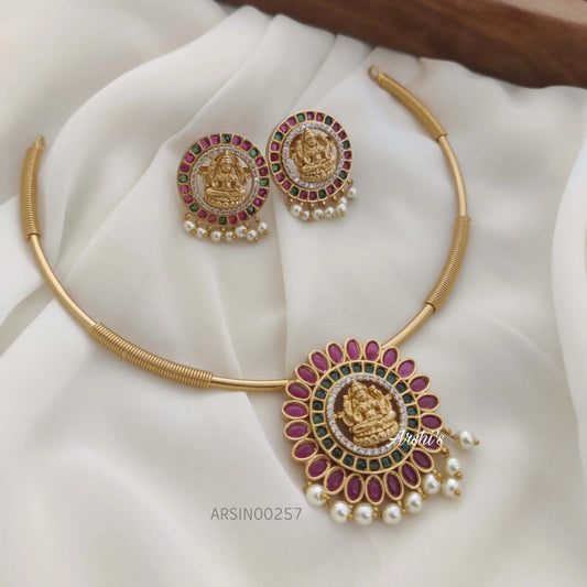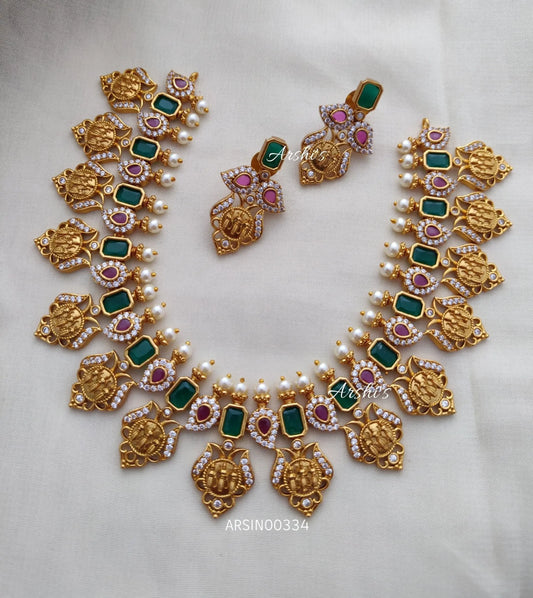 Navarathna Goddess Ganesha Lakshmi Coin Necklace