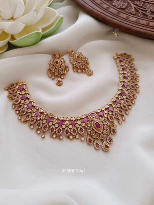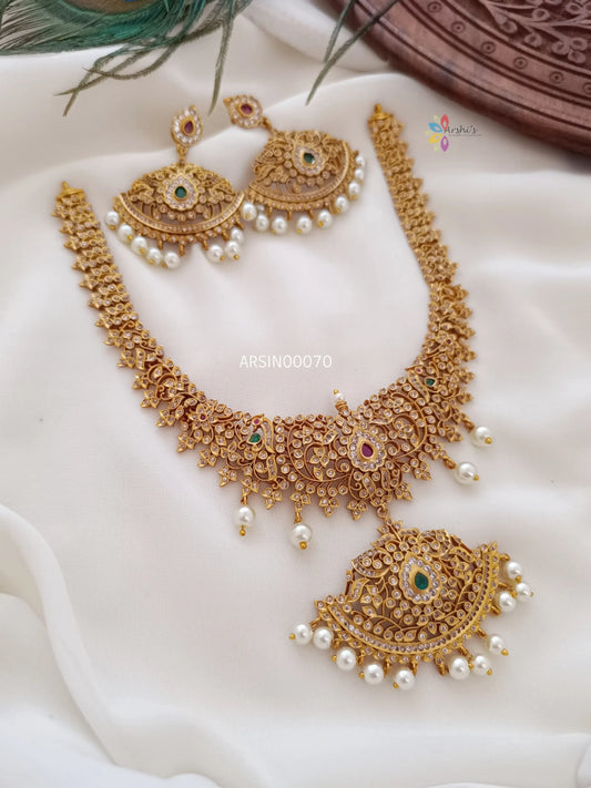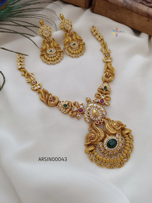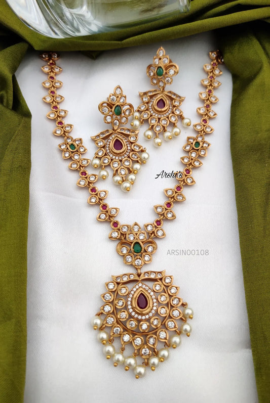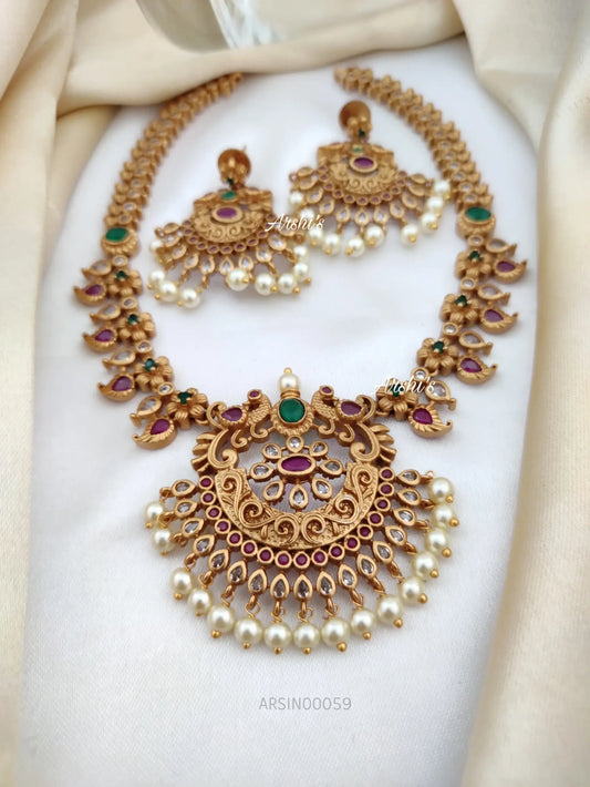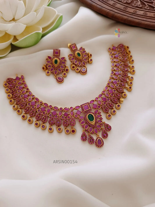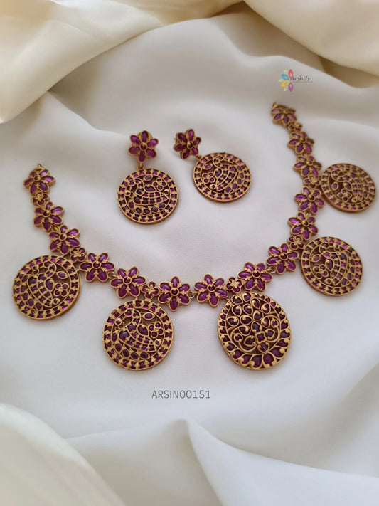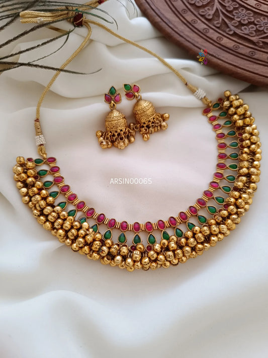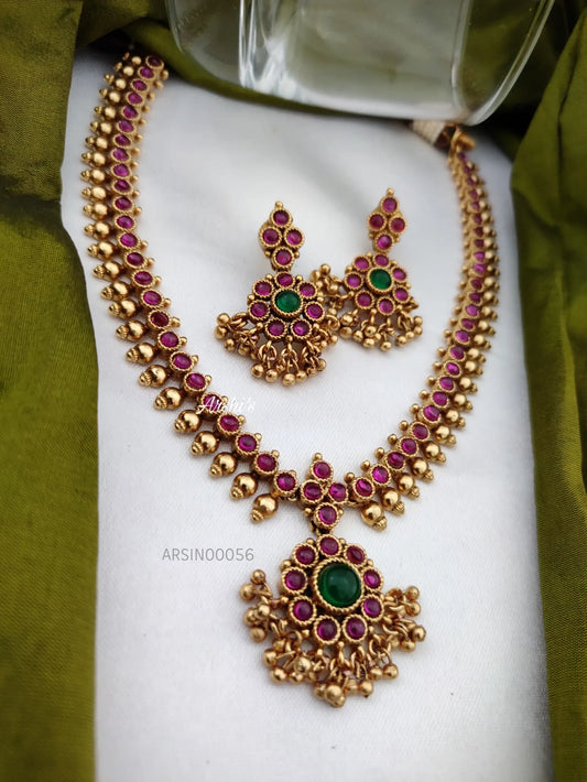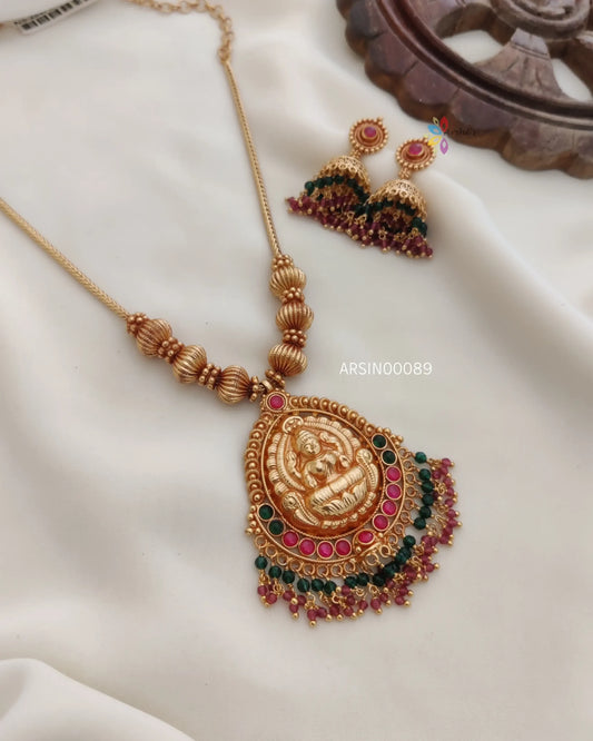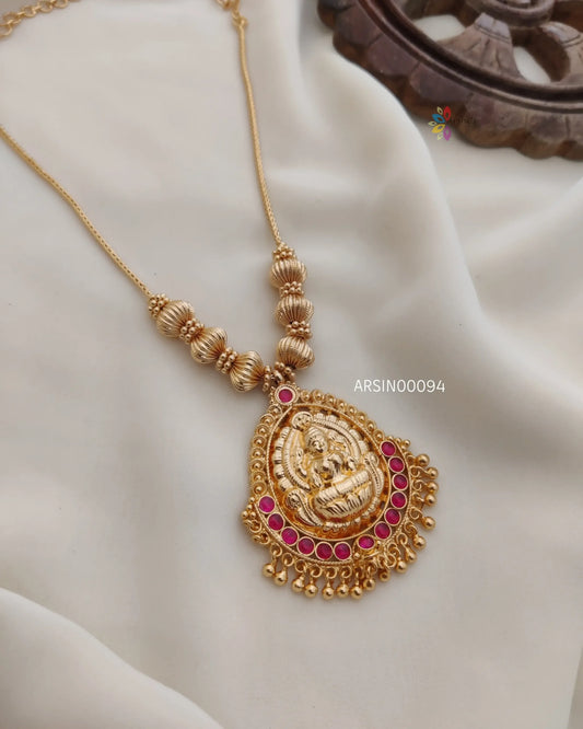 Traditional kemp Stone Lakshmi Guttapusalu Necklace