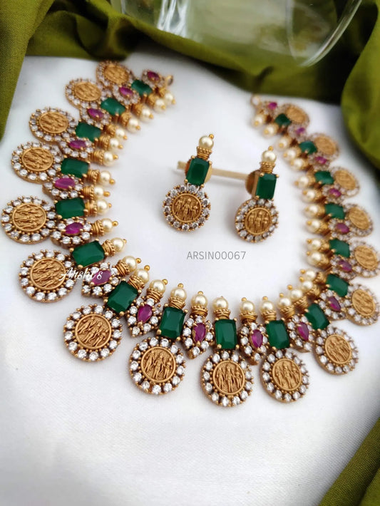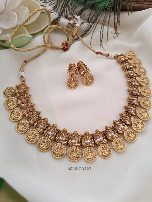 Navarathna Goddess Ganesha Lakshmi Coin Necklace