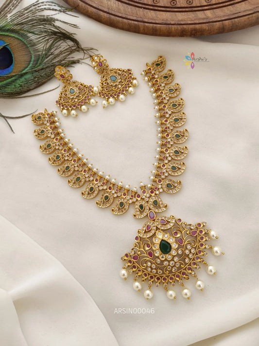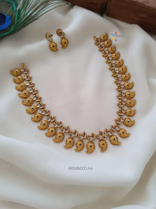 Beautiful mango peacock design AD necklace