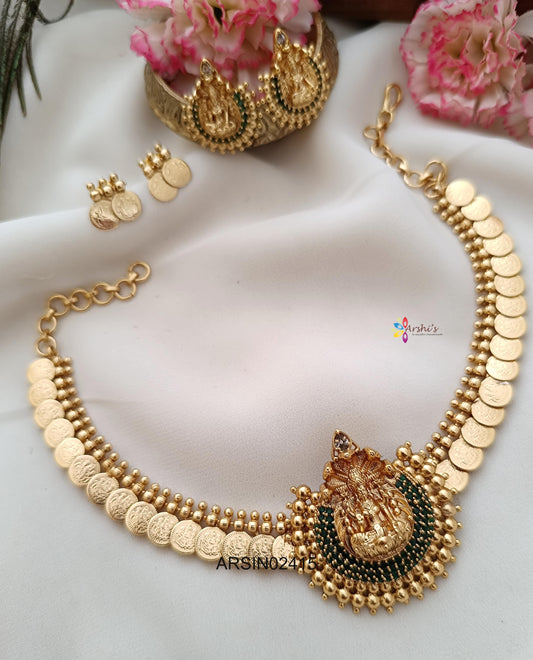 Sold outLakshmi Coin Green Stone Necklace