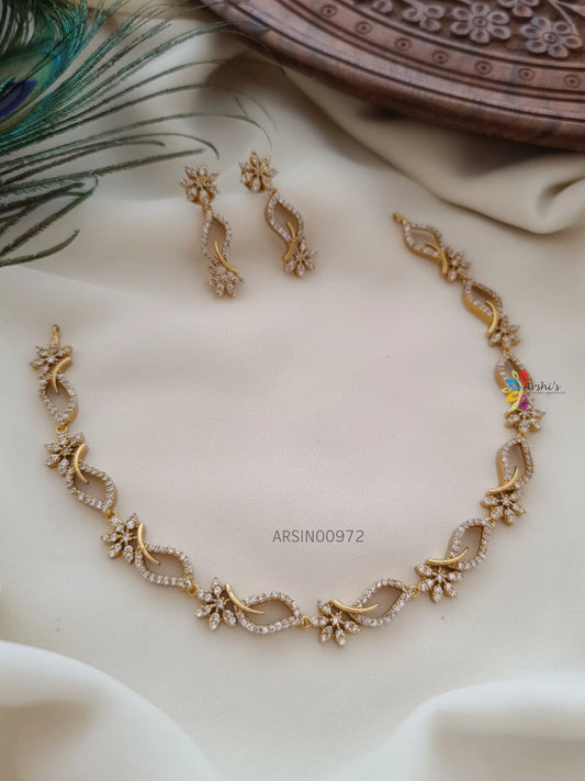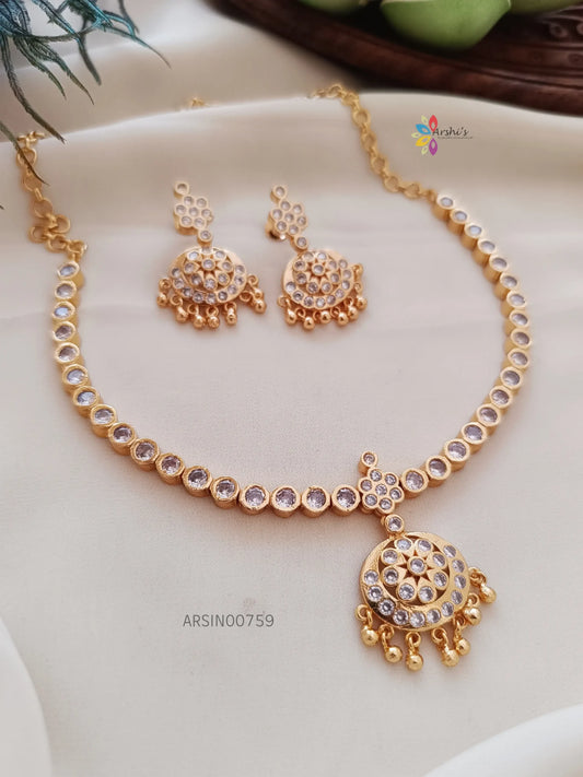 Simple Diamond Alike White AD Stone Necklace