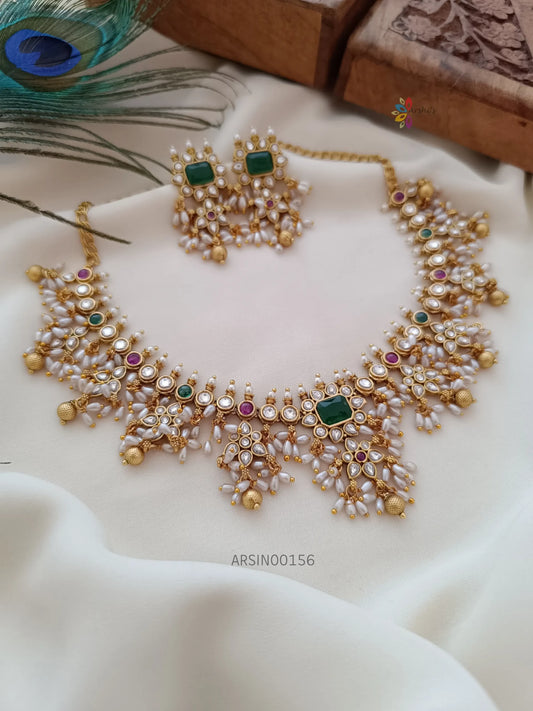 Sold outAD Stone Pearl Drop Emerald Necklace