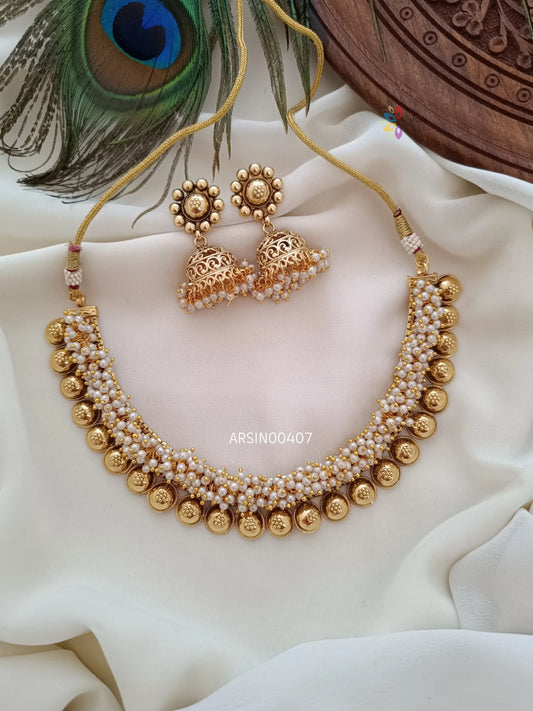 Beautiful rice bead guttapusalu necklace