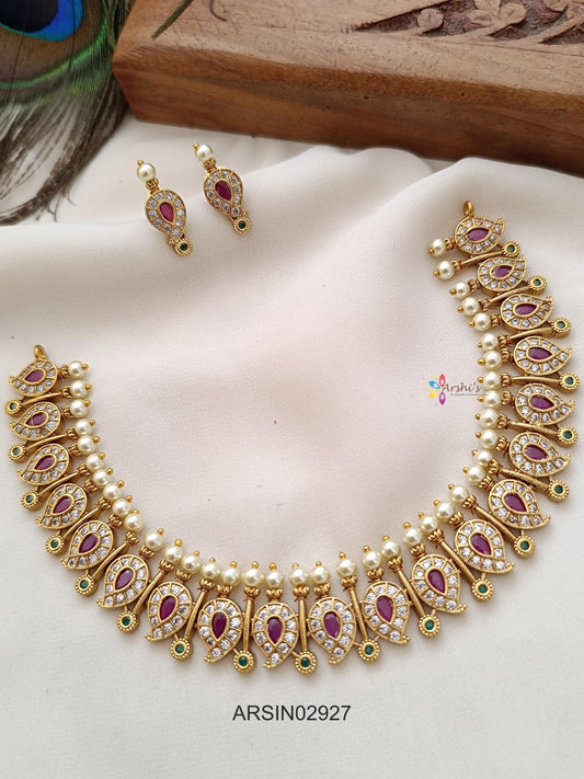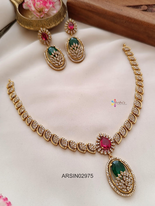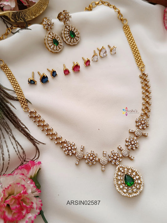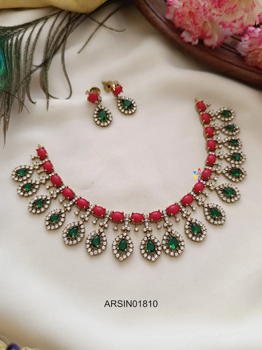 Green Tear Drops with Kemp and Whire Stone Necklace