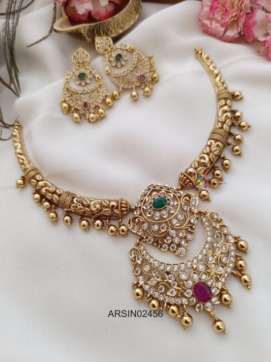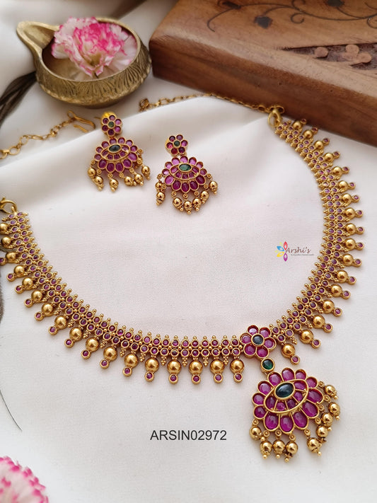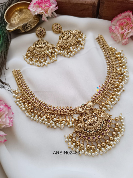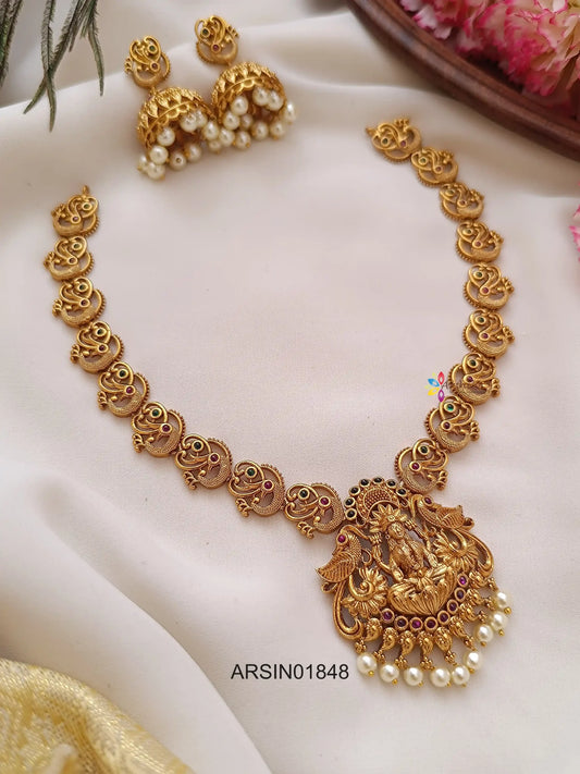 Matte Finish Emerald Stone Lakshmi Pendant Necklace