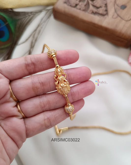 Lakshmi with Side Gold Ball White Stone Mugappu Chain