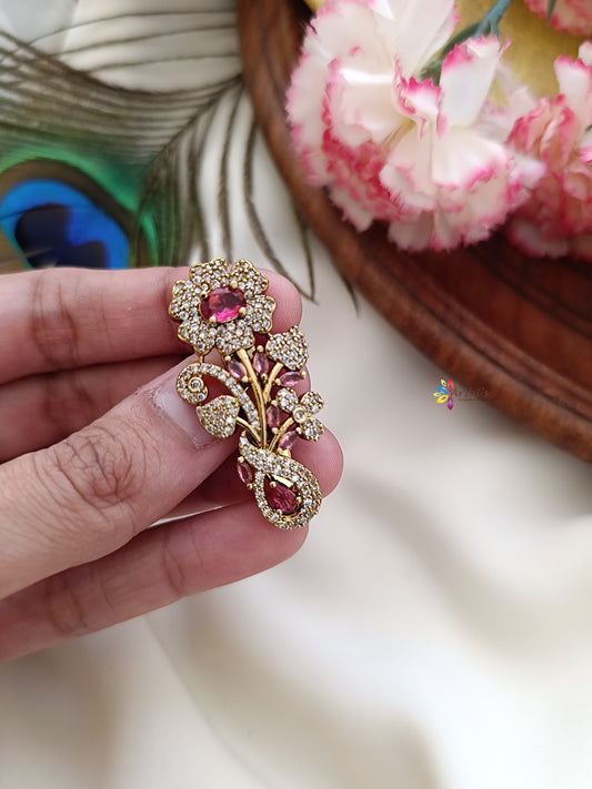 Peacock Flower Stone Saree Pin