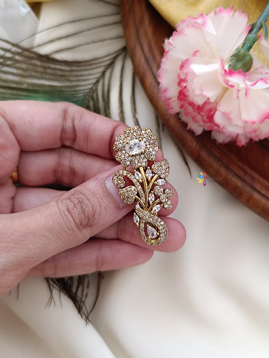 Flower Design Stone Saree Pin