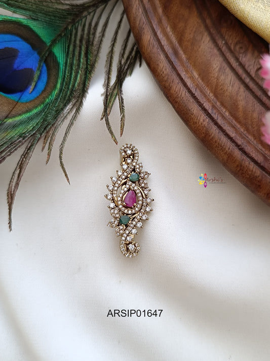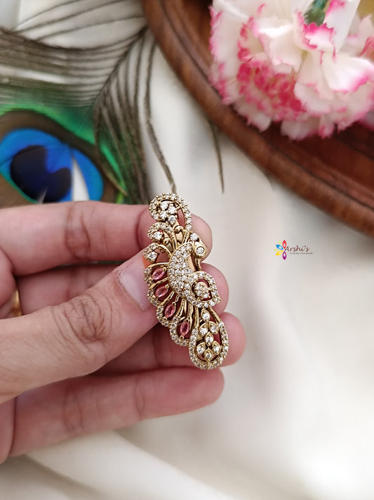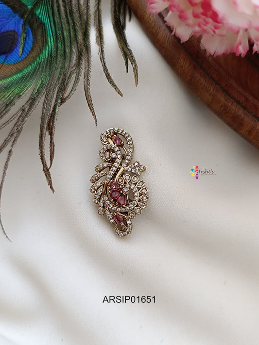 Adorable Peacock White and Red Stone Sareepin