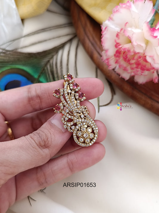 Adorable Peacock White Stone Sareepin